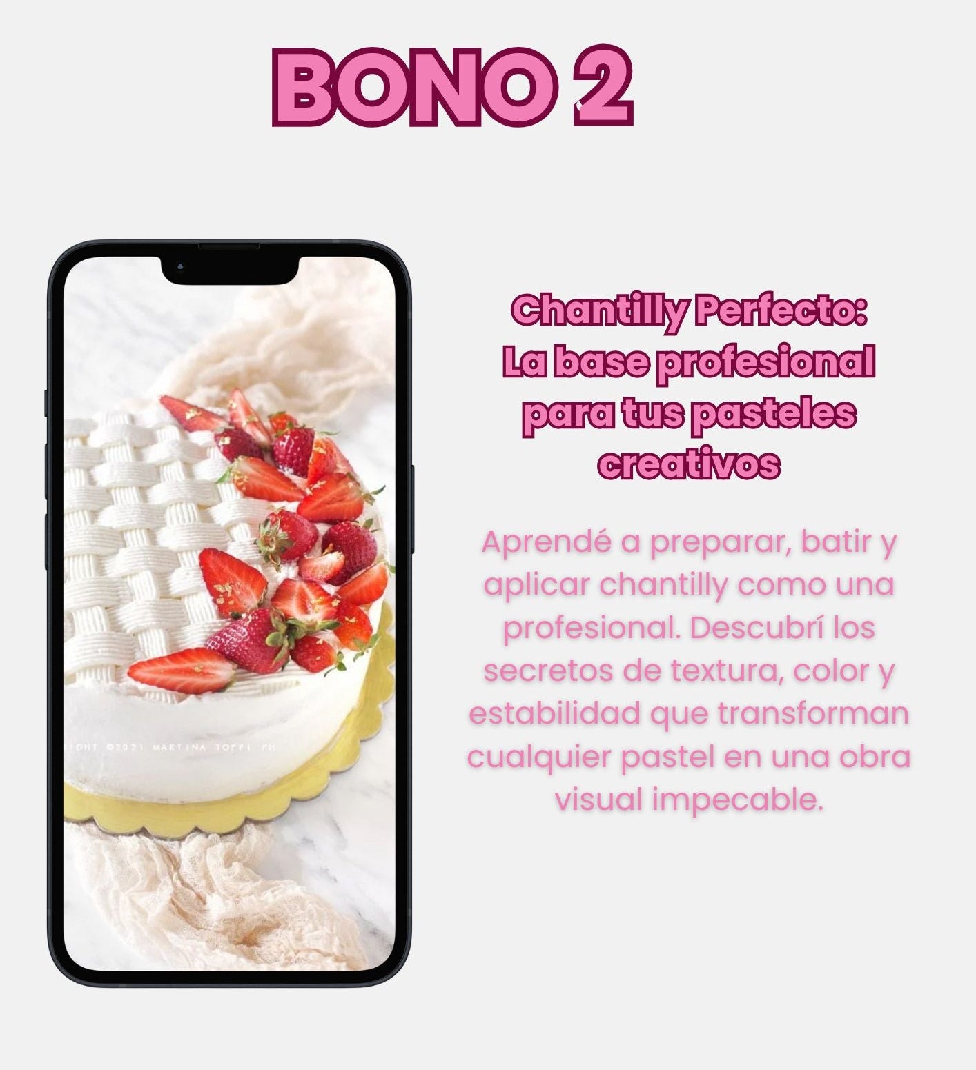 - 🍓 Chantilly Perfecto: La base profesional para tus pasteles. Preparación, batido y aplicación con textura, color y estabilidad impecables.