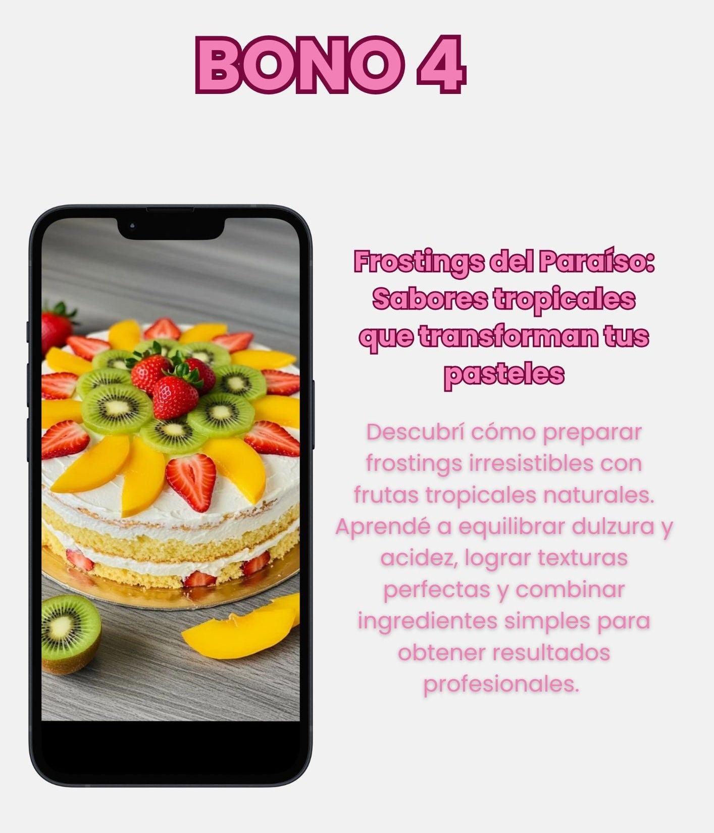 - 🥝 Frostings del Paraíso (sabores tropicales): Recetas irresistibles con frutas naturales; equilibrio de dulzor/acidez y texturas perfectas.