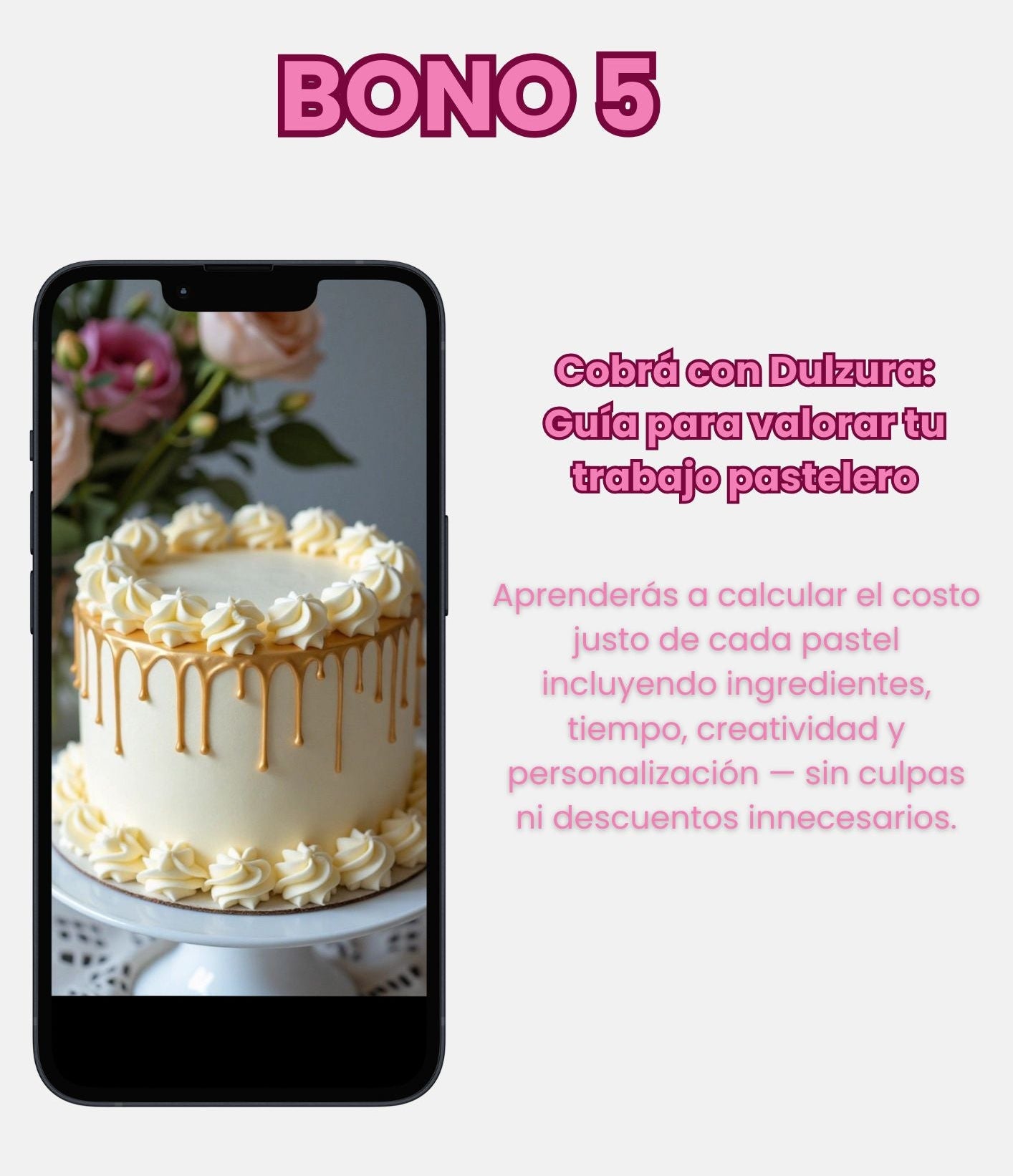 - 💰 Cobra con Dulzura: Guía para poner precio justo a tus pasteles (ingredientes, tiempo, creatividad y personalización) sin culpas.