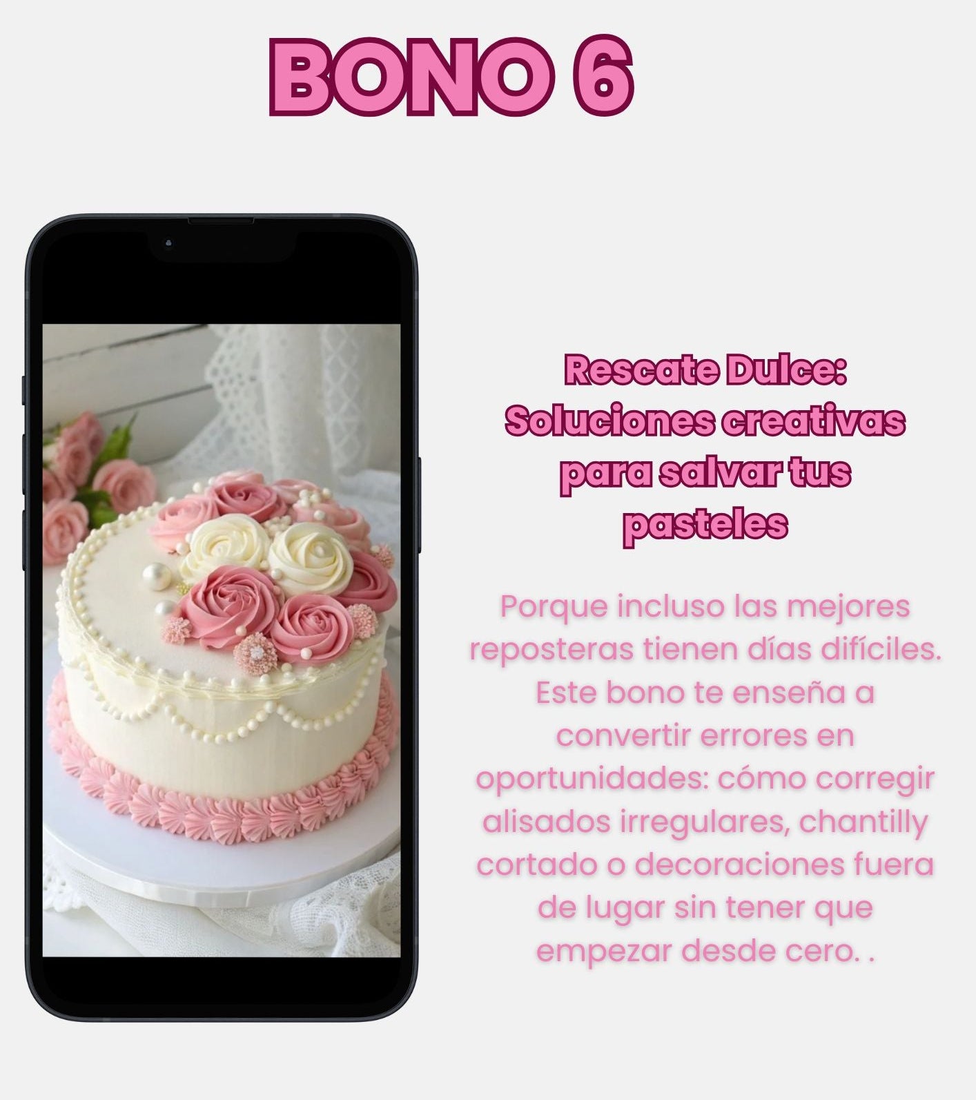 - 🧯 Rescate Dulce: Soluciones creativas para salvar errores (alisados irregulares, chantilly cortado, decoraciones fuera de lugar) sin empezar de cero.