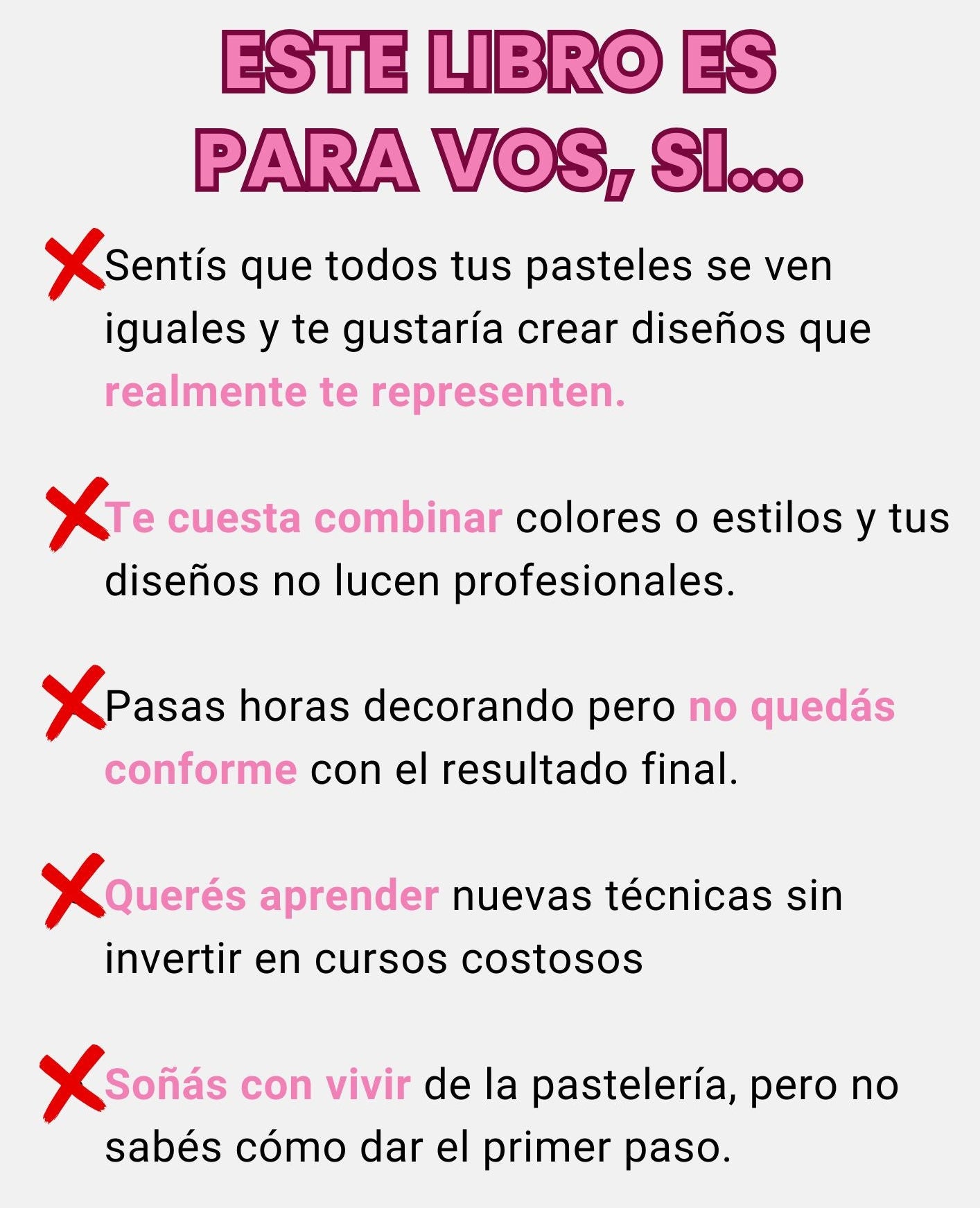 Incluye técnicas, ejercicios y pasos prácticos para diseñar pasteles únicos, profesionales y rentables.